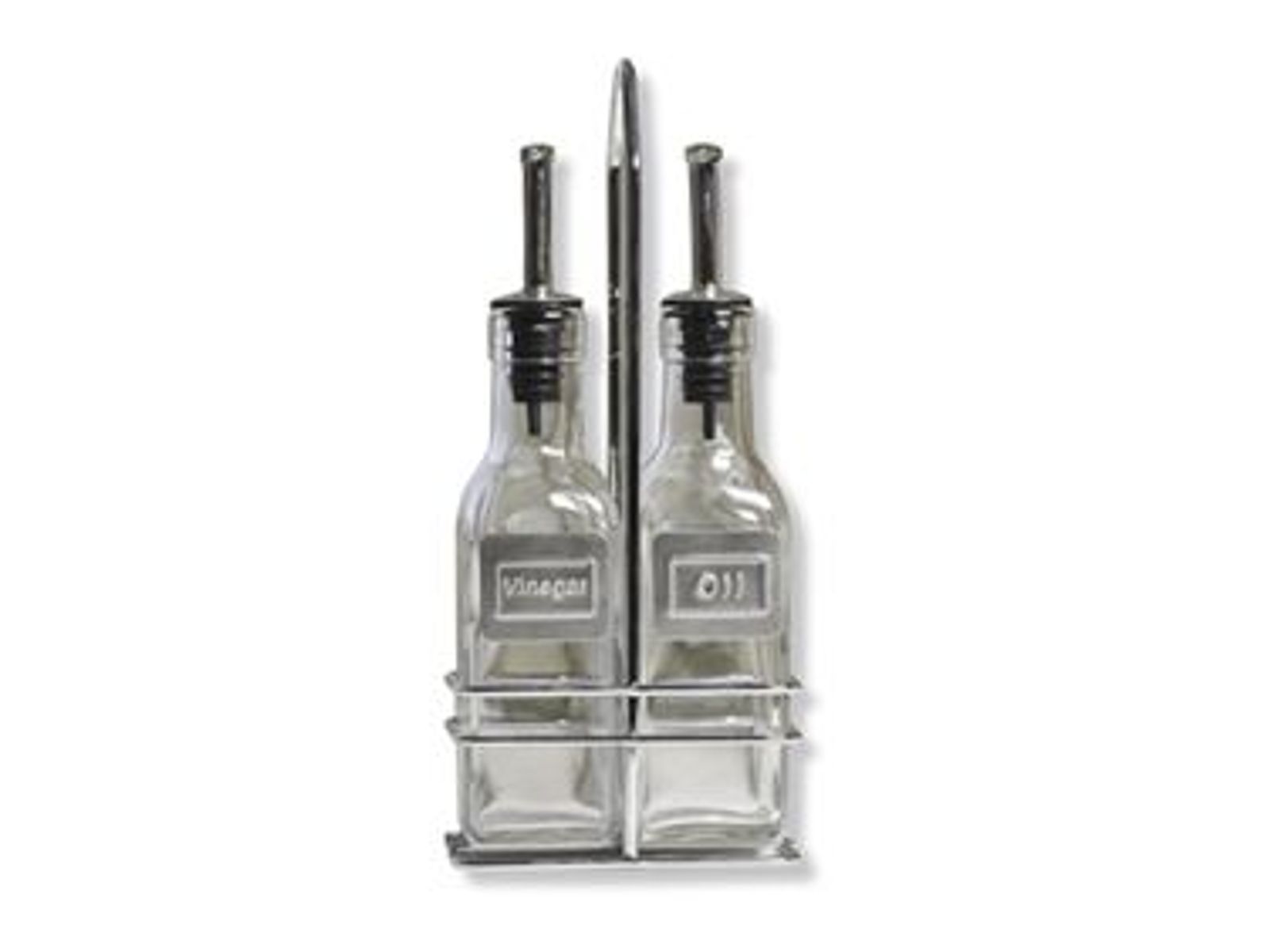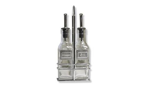 Met vaste houder om eenvoudig naar de eettafel te verplaatsen en met duidelijke metalen naamplaatjes om de olie en het azijn uit elkaar te halen.