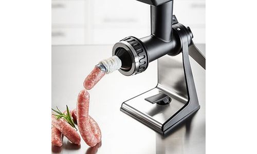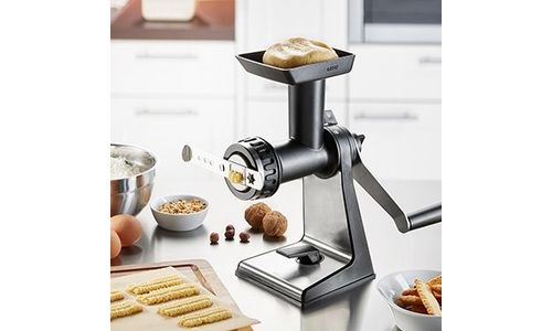 Voor zelfgemaakte gerechten van zoet tot hartig biedt de hakmachine praktische toebehoren - zijn verfijnde techniek zorgt voor het moeiteloos fijnhakken van vlees of groenten - en sprits levert hij ook in topvorm!