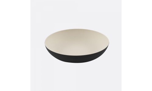 Serveer je slaatje vanaf nu altijd in deze duurzame slakom van Point-Virgule. De combinatie van zwart aan de buitenkant en wit aan de binnenkant geeft de slakom een tijdloze uitstraling. Afmeting: Ø 32cm H 6.9cm De bamboevezelcollectie van Point-Virgule is gemaakt uit een samenstelling van bamboevezel en maïs, versterkt met melaminehars. Bamboevezel is een natuurlijk materiaal waar geen bomen voor worden gekapt. Bamboe kan meer dan één meter per dag groeien en is daarom 's werelds snelst groeiende plant. Om schade aan de moederplant te voorkomen, worden alleen de zijtakken van de plant gebruikt voor de bamboevezels. De producten uit bamboevezel kunnen temperaturen van -20°C tot 70°C verdragen en dit maximum 2 uur lang. Ze mogen niet gebruikt worden in de oven of magnetron maar zijn wel diepvriesbestendig. We raden aan om de producten voor het eerste gebruik even met de hand af te wassen. Daarna kunnen ze eenvoudig in de vaatwasser worden gereinigd. De bamboevezelproducten zijn volledige BPA- en ftalatenvrij. |