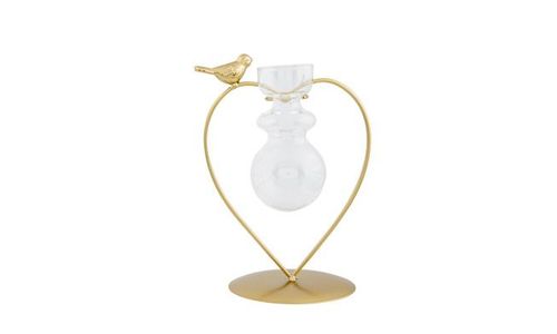 Houder Bird 1x Glass Vase Goud 14x10,5xh 18cm Hart Metaal-glas
