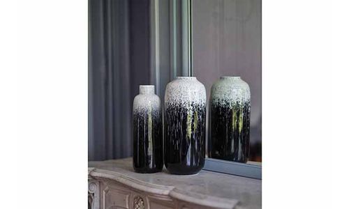 Vaas Rain Zwart-wit 16x16xh30,7cm Rond K Eramiek