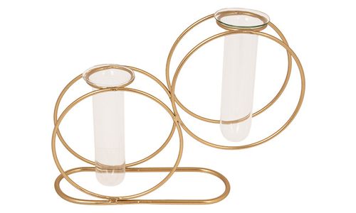 Vaas 2 Circles Glass Tube 3,5x10cm Goud 19x5xh15cm Rond Metaal