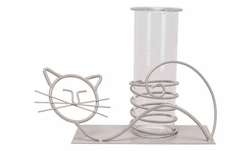 Vaas Cat Glass Tube 6x14.5cm Grijs 20,5x 8xh9cm Langwerpig Metaal