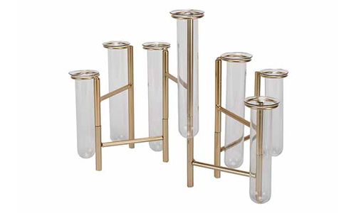 Vaas Multiple Vases 7 Glass Tubes Goud 5 7,5x7,5xh22cm Langwerpig Metaal