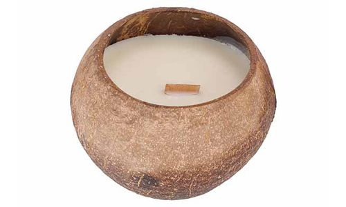 Cocos Kaars Met Houten Wiek D12cm Kokos Geur
