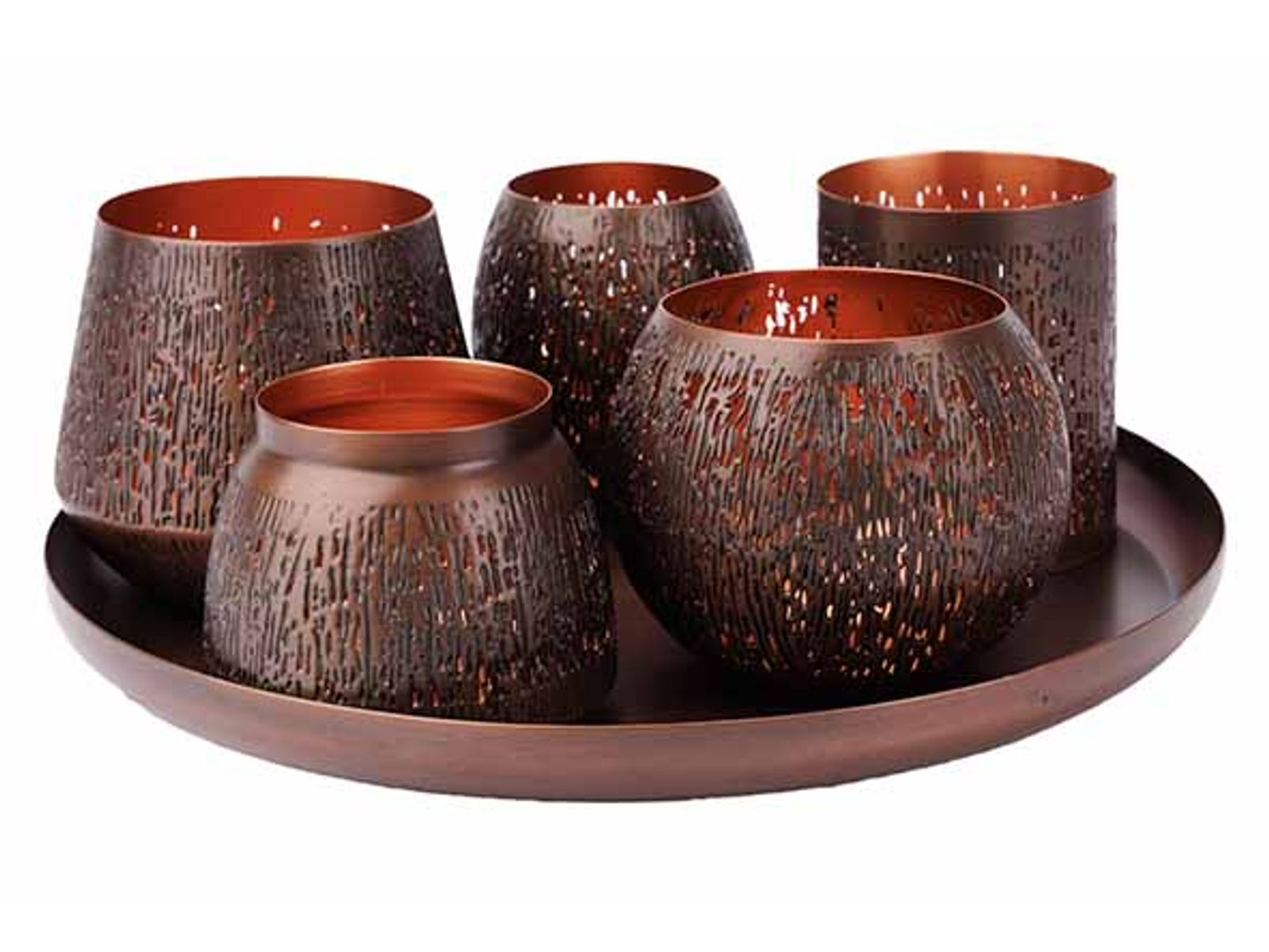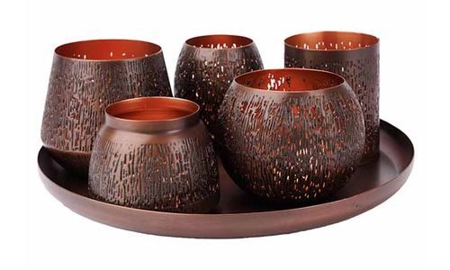 > Theelichtjeshouder  > Noya  > Giftset Tlightholders And Plate 6dlg Ant Ique Koper 30x30xh10cm Metaal