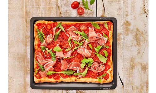 Met merkantiaanbaklaag, knapperig bakresultaat door speciale perforatie, stabiele kwaliteit, eenvoudig te reinigen, verstelbaar, stevige grip door veiligheidspal, geschikt voor alle gangbare ovens, hittebestendig tot 230 °C